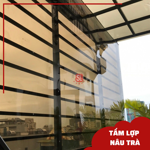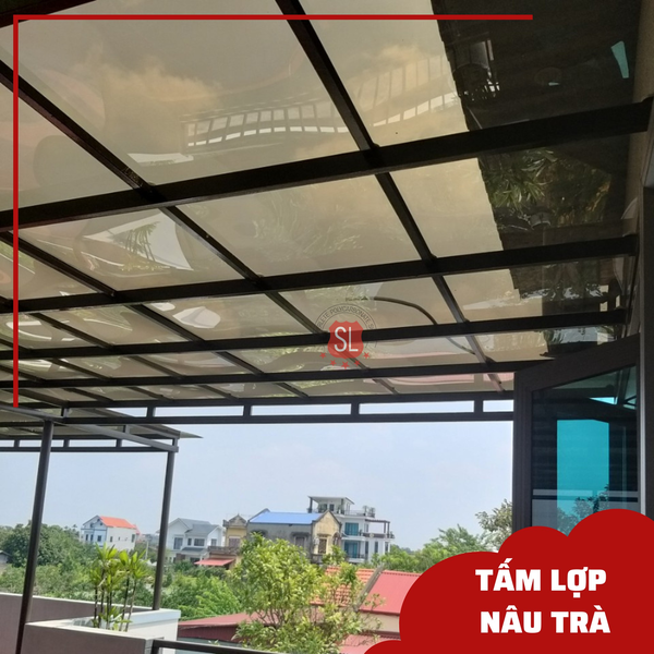 Tấm lợp Poly màu nâu trà nhà SL chính là một trong những giải pháp hiệu quả nhất. Tone màu nâu trà hơi trầm màu gỗ, ánh sáng đi qua sẽ sáng bừng màu vàng nhạt như ánh nắng nhẹ, cảm giác rất dễ chịu, thư thái, ấm áp hơn vào mùa đông, hơn hết là đảm bảo ánh sáng sinh hoạt cho gia đình.